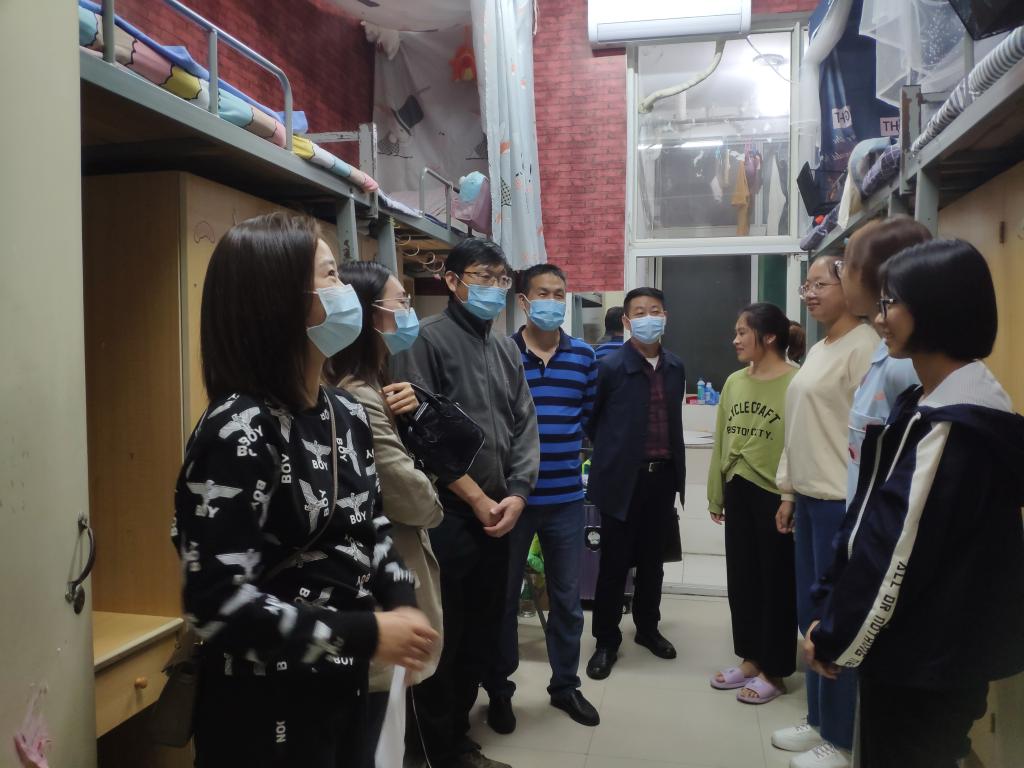 在走访过程中,熊经理一直嘱咐同学们要搞好团结,尽快融入新的环境,室友之间分工协作,保持宿舍良好卫生,在老员工活里共同进步。院领导和老师对新生亲切关怀,叮嘱新生换季时节容易感冒生病要注意及时增减衣物。胡书记热情的和大家聊了很多,尤其要求同学们在疫情防控常态化期间,大家要做好个人防护,戴好口罩,勤洗手,做到非必要不出校门。与新生的交谈中陶书记也特别提醒大家,高校开学季要重视网络安全,远离非法校园贷,谨防上当受骗。